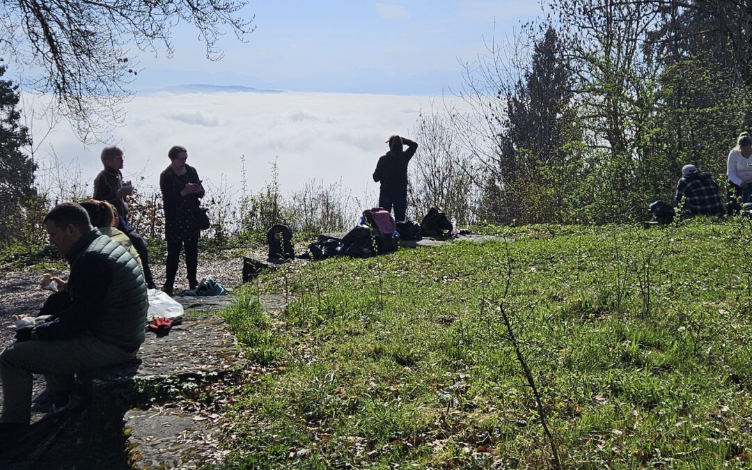 Während einer wohlverdienten Pause beim Rastplatz Annaburg genossen wir über dem Nebelmeer das von Stallikon bereitgestellte Sandwich und sammelten Kraft für die letzte Etappe.